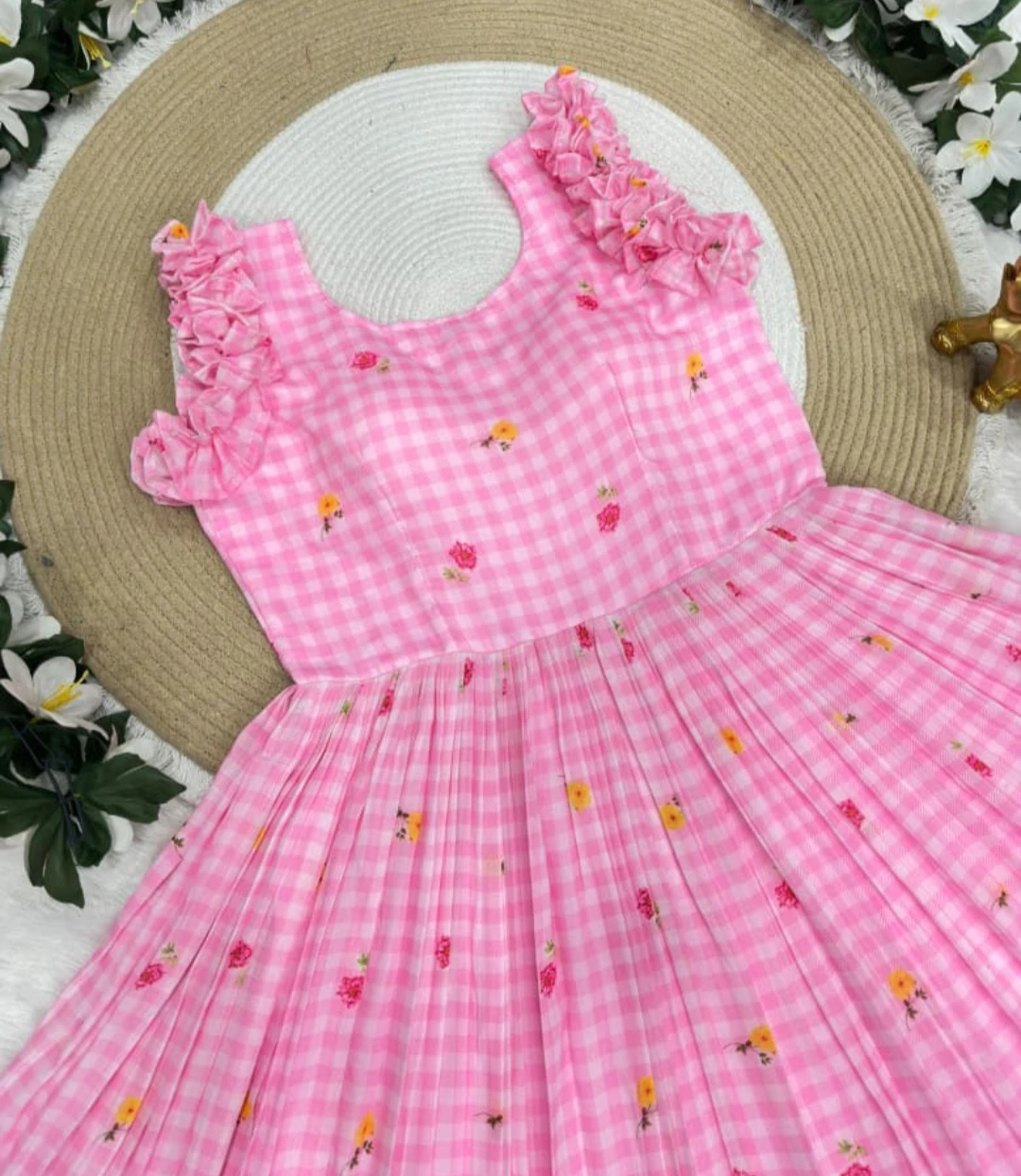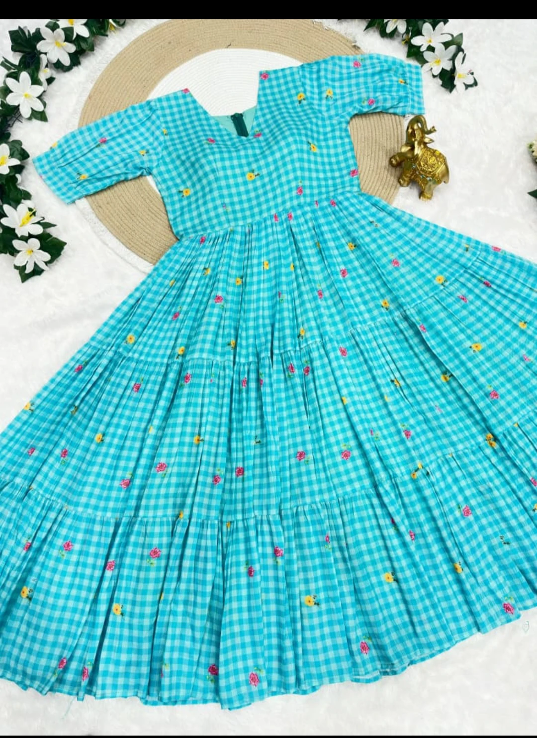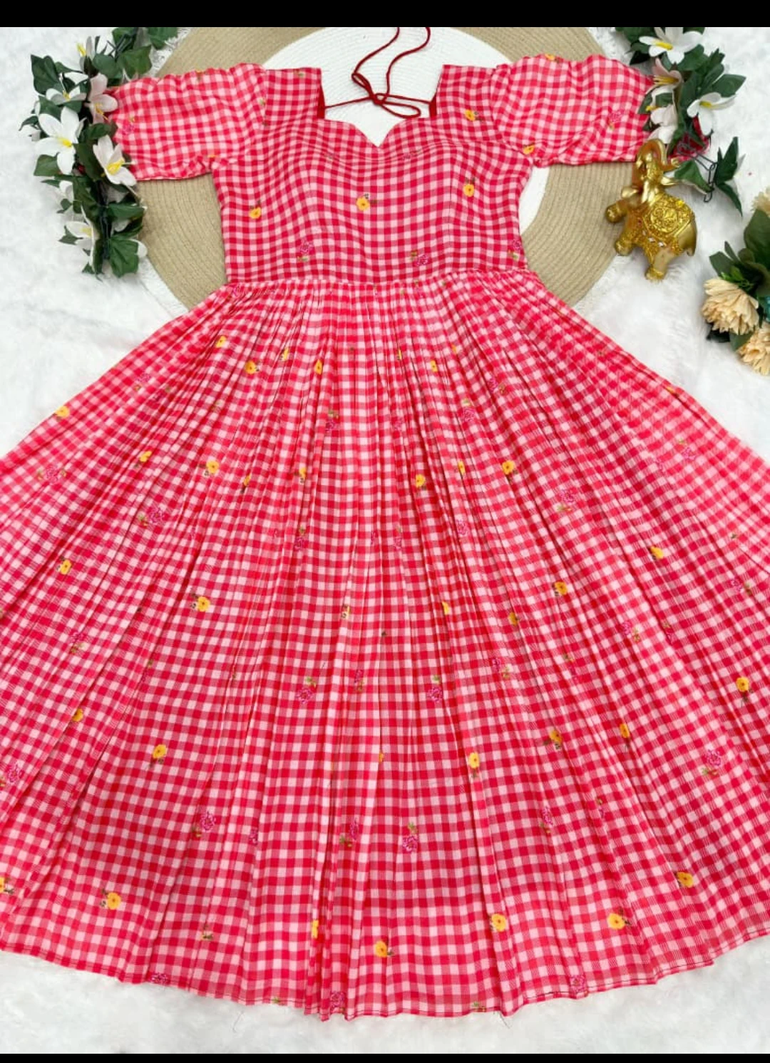 *◾ MIDI FROCK : Beautifully Mul Chanderi Stitched Cheks Print Gown & Beautiful Sleeves*